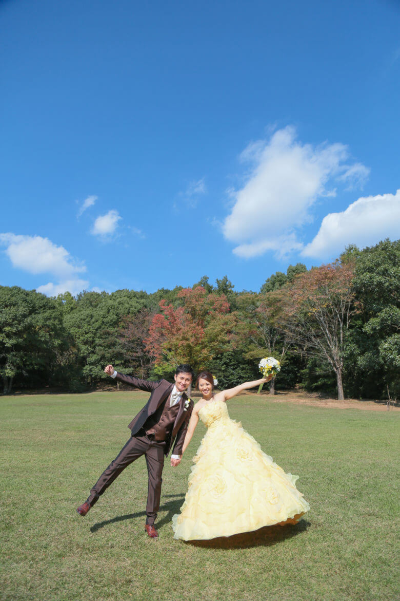山の中にある自然公園のため芝生や緑豊かな中で撮影可能