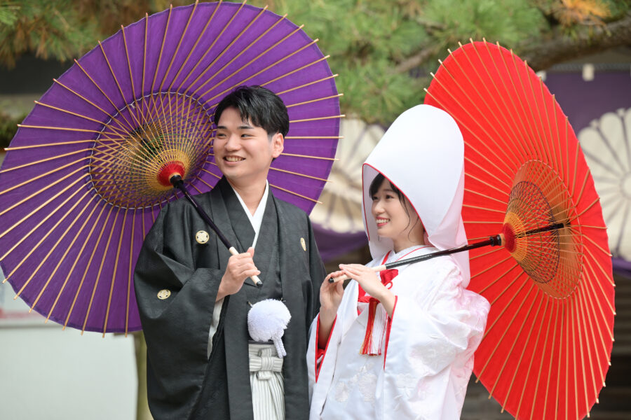 日本らしい湿気を感じる今日この頃、そろそろ日傘が大活躍しそうですそんなとても晴れた暖かい日に緑に囲まれた宇佐神宮での挙式です。 お式の際は神社の敷地内になるお部屋をお借りできるのでお支度の際はワイワイと楽しい時間が流れま…